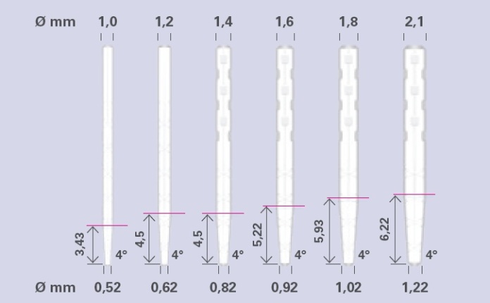 Nowa linia pro stanowi doskonałe uzupełnienie wkładów korzeniowych EXATEC, CYTEC i CONTEC wykonanych z włókna szklanego, które od ponad 20 lat sprawdzają się na całym świecie. Charakteryzuje się ona tymi samymi wyjątkowymi właściwościami, zwłaszcza w zakresie stabilności i bezpiecznego połączenia z kompozytem.
