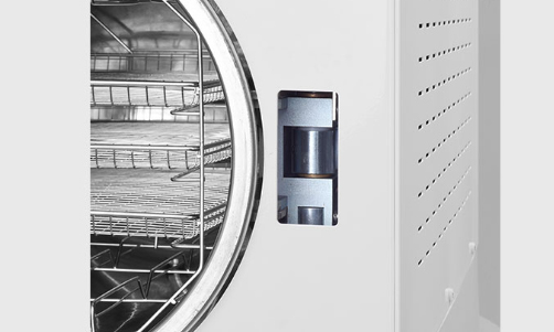 Autoklaw wyposażony jest w 3 tacki, stelaż i uchwyt do tacek, czytnik USB, czujnik jakości wody (jako opcja zewnętrzna drukarka termiczna).