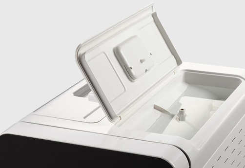 Otwarty zbiornik łatwy do czyszczenia. Wbudowany czujnik jakości wody monitoruje jej jakość zmniejszając wskaźnik awarii autoklawu i przedłużając żywotność maszyny.