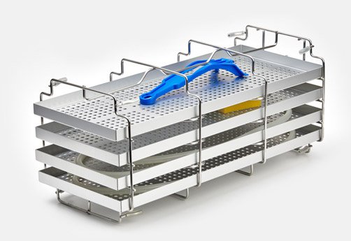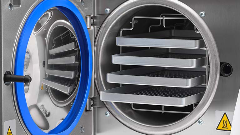 Autoklaw wyposażony jest w 4 tacki, stelaż i uchwyt do tacek, drukarkę termiczną, czujnik jakości wody (opcjonalnie czytnik USB oraz system ROSI do uzdatniania wody).