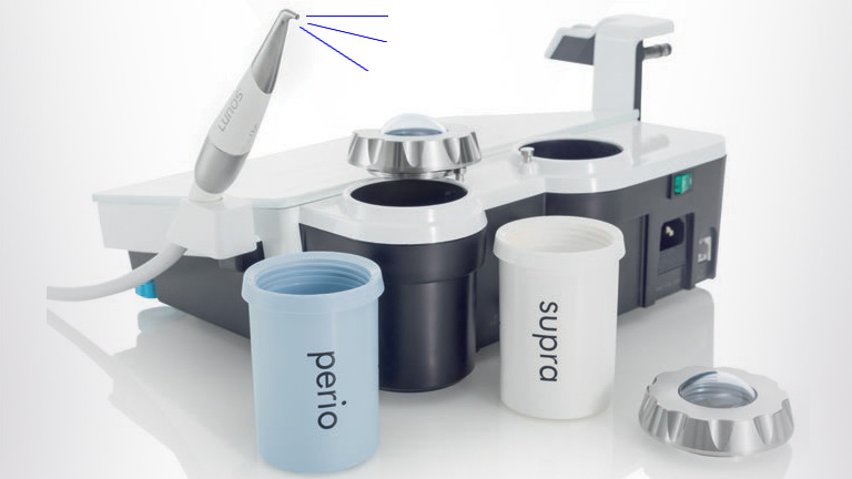Podczas jednej sesji profilaktycznej lub leczenia paradontozy można przełączać się między piaskowaniem naddziąsłowym a poddziąsłowym, wykorzystując do tego funkcje Supra i Perio. Można przy tym stosować naprzemiennie dwa proszki do profilaktyki Lunos®. W razie potrzeby można przełączać się pomiędzy piaskowaniem (Polishing) a metodą ultradźwiękową (Ultrasound). Zabezpieczenie przed zatkaniem: ciągły strumień powietrza niezawodnie zapobiega powstawaniu osadów w systemie przewodów elastycznych i chroni przed niedrożnością urządzenia.