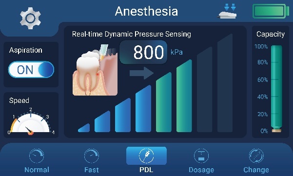 System EIGHTEETH E-Flow doskonale sprawdza się w zabiegach stomatologicznych wymagających dokładnego i komfortowego podania znieczulenia. Dzięki inteligentnej analizie dawki i automatycznej aspiracji, urządzenie gwarantuje bezpieczne, precyzyjne i nowoczesne znieczulenie komputerowe.